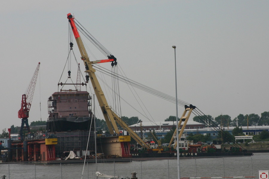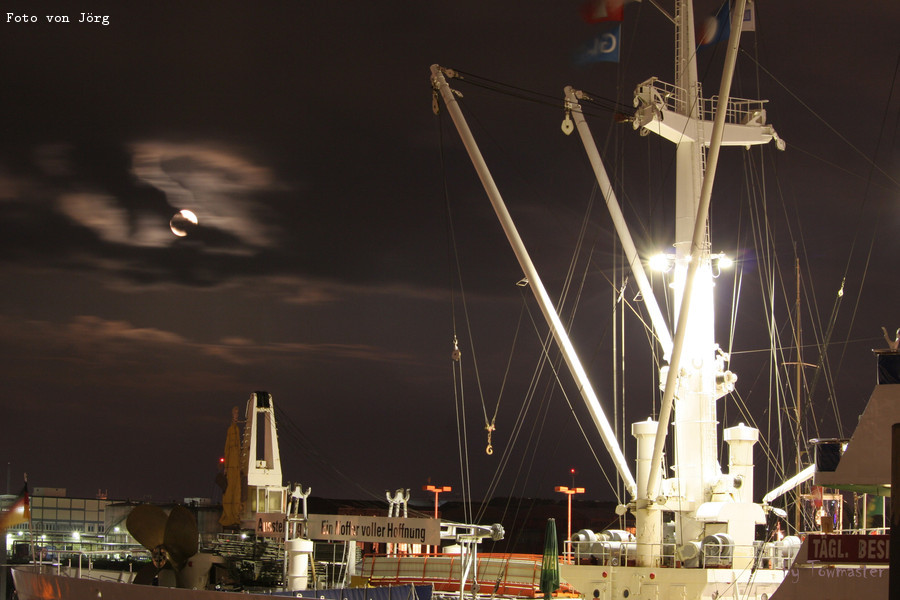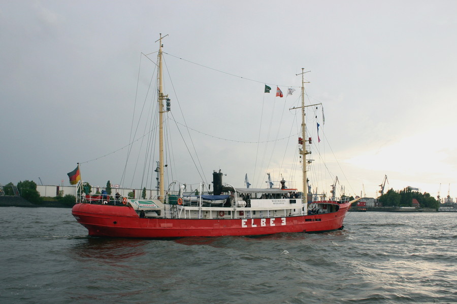 Und dann klingelte das Handy, Alarmmeldung : Die Elbe 3 sinkt ! Schon ein halber Meter Wasser im Schiff, es steigt weiter! Nur noch der Mast guckt raus. Die Gerüchteküche brodelte. Am Hafen stellte sich dann raus, das Schiff hatte beim Anlegemanöver einen Poller gestreift und sich mit einer daran befindlichen Öse einen Riss von ca. 20 Zentimetern in der Bordwand geholt. Doch die Feuerwehr war schnell mit Pumpen vor Ort und konnte so das Wasser stoppen. In der Nacht wurde der Riss dann von der Werft in einem Noteinsatz provisorisch repariert. Das Ganze war zwar ärgerlich, doch die Elbe 3 stand weiter für die Besucher zur Verfügung und konnte besichtigt werden.